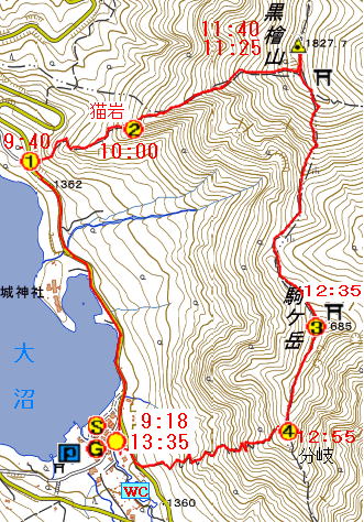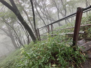 平日だし雨模様なので山はすいていた。大駐車場はガラガラ。 9時18分出発。車道20分ほど歩くと登山口。大岩ゴロゴロの登山道。雨で濡れているのでいつもより気を使って歩いた。 実際には表面が濡れて光っているのは滑るが表面がザラザラしているのは滑りにくいなど。幸い山頂までスリップすることはなかった。 11時25分黒檜山着。山頂手前のササ原は濡れていたが山頂の岩は濡れてはいなかった。おかげで座ってランチすることができた。 11時40分出発。休憩中にソロの2組と出会った。山中で会ったのはこの2名だけ。 黒檜山からの縦走路は丸太階段などで整備されているので歩き易かった。 分岐からのジグザグ道は長く感じたが40分程で車道に出られた。13時35分着。 |