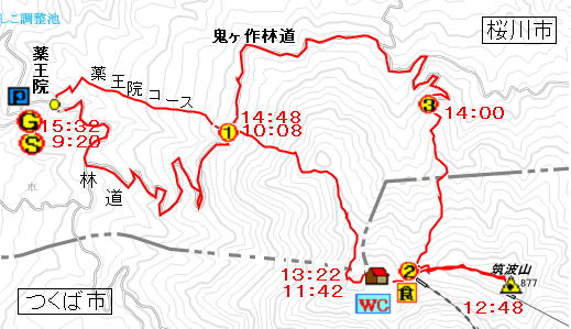 筑波山に薬王院コースから登る 。昨夜来の強風で茨城県方面に被害が出たが風は朝には収まり登山には差し支えなさそう。 |
