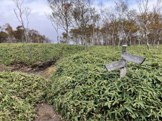 ![]() 11:21 岩場を過ぎるとダテカンバとササ原になる |