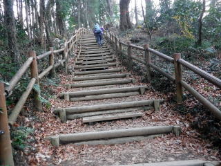 丸太階段が連続する稲荷山コース